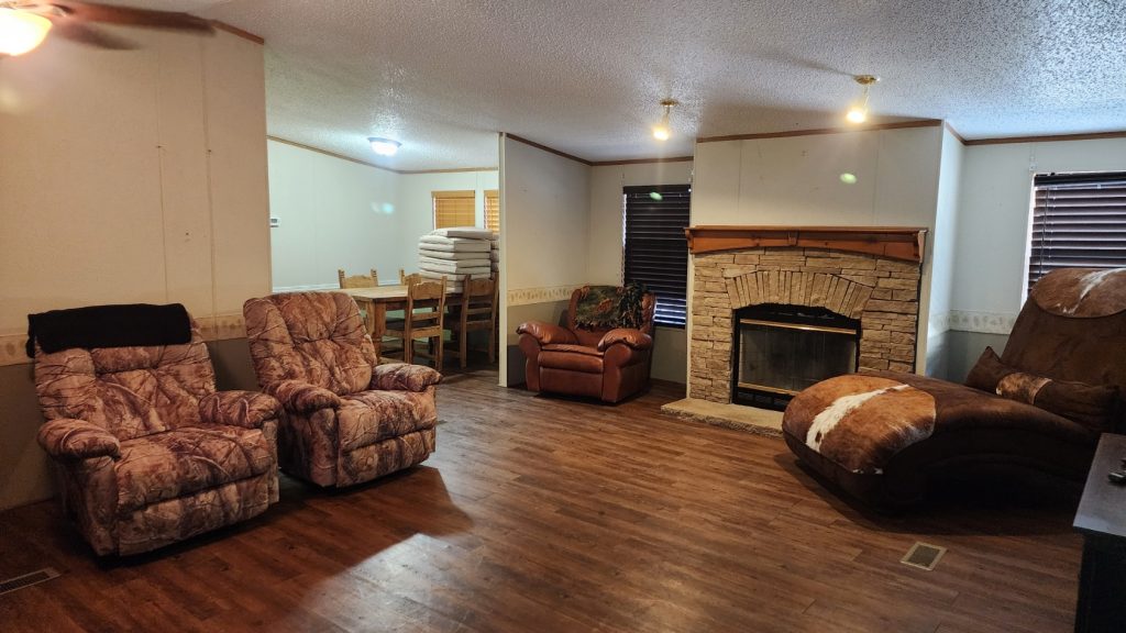 Our hunting lodge is located atop a beautiful plateau with multi-mile views, covered front and back porches, outdoor firepit, and comfortable outdoor seating. Comfortable bedrooms and bathrooms, internet access, and streaming television. It is a perfect place to relax and rest after a long day hunting.